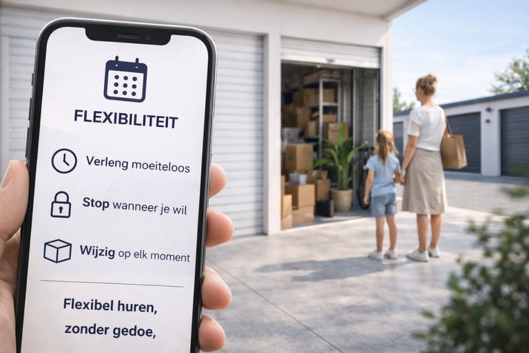 Bij StoreHero zit je niet vast aan lange contracten. Je huurt een opslagruimte zolang je die nodig hebt en past je situatie eenvoudig aan wanneer dat nodig is.